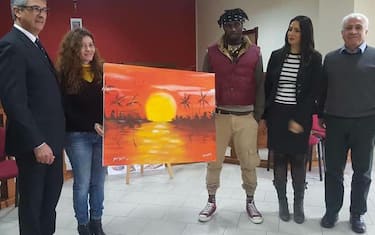 (ANSA) - CUTRO (CROTONE), 23 GEN - Due mondi diversi uniti dall'arte. Monica Arabia, pittrice cutrese, e Michel Diem, migrante senegalese ospite del Regional Hub centro di accoglienza per richiedenti asilo Sant'Anna di Isola Capo Rizzuto, hanno realizzato uno dipinto a quattro mani, raffigurando un suggestivo tramonto, in un'esplosione di luce e colori. L'opera è stata realizzata nella sala consiliare del Comune di Cutro, in occasione della mostra di pittura allestita con le opere di entrambi gli artisti. "Non parliamo la stessa lingua - ha detto Monica Arabia - perché io non conosco il francese e Michel non parla italiano, ma siamo entrati in comunicazione attraverso la nostra arte. Si è instaurata tra noi una perfetta sintonia, ho imparato veramente molto e Michel è un grande artista". Visibilmente emozionato è parso invece l'artista senegalese Michel Diem, che si è detto entusiasta, visto che per la prima volta ha avuto l'opportunità di esporre le proprie opere.