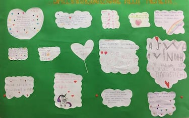 (ANSA) - ISOLA CAPO RIZZUTO (CROTONE), 13 FEB - I piccoli figli di migranti ospiti del Regional Hub di Sant'Anna non possono andare a scuola per l'influenza e così i loro compagni di classe della scuola paritaria "Verna" di Isola Capo Rizzuto li inondano di messaggi di pronta guarigione pieni di affetto e amicizia che sono stati sistemati su un cartellone in aula.
