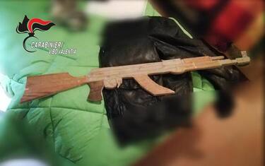 (ANSA) - VIBO VALENTIA, 16 DIC - Una riproduzione in legno di un fucile mitragliatore kalashnikov di legno perfettamente disegnato è stato trovato dai carabinieri di Vibo Valentia durante le perquisizioni effettuate nell'ambito degli arresti per l'omicidio di Salvatore Battaglia. L'arma giocattolo è stata trovata in un'abitazione nella frazione Piscopio di Vibo Valentia, ed era stata regalata da uno degli arrestati al nipote. Un gesto, questo, stigmatizzato dagli investigatori dell'Arma dei carabinieri nel corso della conferenza stampa di stamani. "Il 99% dei bambini nati nelle famiglie di 'ndrangheta diventerà a sua volta un 'ndranghetista. Ecco perché si sta cercando di togliere la patria potestà ai genitori conclamati mafiosi e mandare i minori lontano dalle famiglie" ha detto in più occasioni il procuratore della Repubblica di Catanzaro Nicola Gratteri. L'episodio emerso nel corso dell'indagine per l'omicidio Battaglia rappresenta l'ennesima testimonianza di come "vengano educati i bambini in queste famiglie".