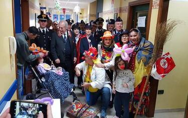 (ANSA) - POLISTENA (REGGIO CALABRIA), 4 GEN - Mattinata speciale per i bambini ricoverati nell'ospedale "Santa Maria degli Ungheresi" di Polistena. I carabinieri della Piana di Gioia Tauro, sia in servizio alla Compagnia di Taurianova che in congedo dell'Associazione nazionale carabinieri, hanno fatto una visita speciale ai bambini ricoverati in pediatria e al personale medico e paramedico, per portare un saluto e gli auguri. Tanti i doni per i piccoli ricoverati ma anche per figli di infermieri e medici, come le tradizionali calze della befana, dolciumi e giocattoli. Un incontro che sta diventando una tradizione negli ultimi anni, anche grazie all'impegno e la volontà della locale Associazione nazionale carabinieri. Un gesto simbolico per portare solidarietà, vicinanza e un po' di gioia ai piccoli che vivono momenti di minore serenità che possono diventare ancora più difficili da sopportare durante le feste. Un'iniziativa che è anche per ringraziare il personale sanitario.