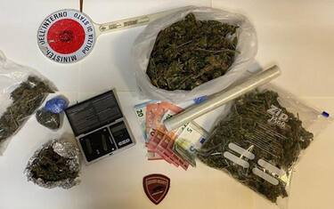 All'interno della camera da letto sono state trovate più buste contenenti canapa indiana e hascisc per un peso complessivo lordo di 351,3 grammi, nonché un bilancino di precisione e la somma di 120 euro in banconote di piccolo taglio, verosimilmente provento dell'attività di spaccio.