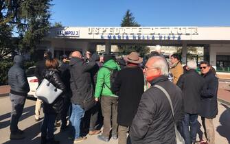 In segno di solidarietà per i colleghi sospesi, davanti all’ospedale e nell’androne si sono radunati diversi infermieri e una rappresentanza dei medici (foto dell’inviato di Sky TG24 Paolo Chiariello) –