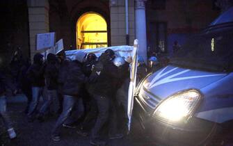 I manifestanti, circa un migliaio tra studenti ed esponenti dei collettivi universitari, volevano raggiungere il rettorato ma sono stati bloccati dalle forze dell'ordine schierate in tenuta antisommossa, all'altezza del civico 32 -