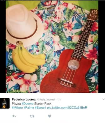Un utente su Twitter si è attrezzato con banane, panama, camicia hawaiana e chitarra per adattarsi ironicamente al clima tropicale che sembra contagiare Milano -