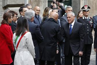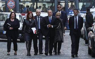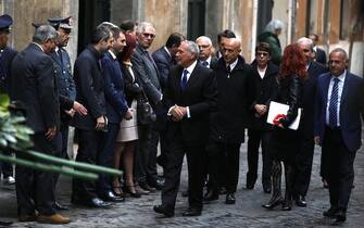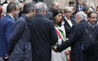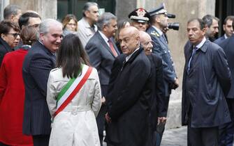 Tra le personalità istituzionali sul posto c'era anche il ministro degli Interni, Marco Minniti, che si è brevemente intrattenuto con Virginia Raggi (di spalle) e Giuseppe Fioroni, deputato del Pd -
