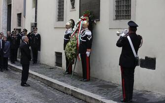 Pietro Grasso ha depositato una corona di fiori nel punto dove, il 9 maggio del 1978, venne parcheggiata la Renault 4 rossa usata dai brigatisti per trasportare il cadavere dell'ex presidente del Consiglio -