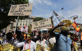 “Nessuna persona è illegale”: è questo uno degli slogan più presenti sui cartelloni dei manifestanti –