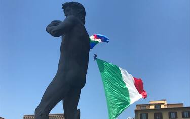 Si sono lanciati da un elicottero a 1500 metri di altezza aprendo in cielo 4 bandiere: quella dell’esercito tra cui quella del Comune di Firenze. Ad assistere all’evento c’era anche il sindaco Dario Nardella -