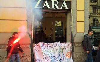 Anche il negozio Zara è stato preso di mira dai manifestanti -