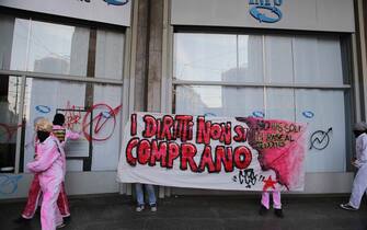 Sono stati esposti anche numerosi striscioni con scritte come "I diritti non si comprano" -