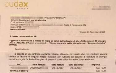 "Paga o ti stacchiamo la corrente". Questo, in sintesi, l’avviso che un’anziana signora di Prata, in provincia di Pordenone, da poco rimasta vedova, ha ricevuto dall’Audax Energia di Vinovo, in provincia di Torino, azienda che gestisce in paese la fornitura di energia elettrica. L'importo da saldare: un centesimo. A riferire l’episodio è il quotidiano Il Gazzettino.