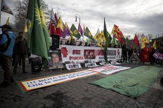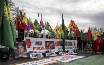 Tra gli striscioni esposti "Stato turco assassino", "Boia Erdogan! Giù le mani dal Kurdistan", "Erdogan = Turchia autostrada per i terroristi" -