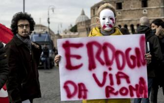 Roma, 5 febbraio 2018 - Tensione al corteo contro la visita del presidente turco Erdogan nella capitale. Al grido di "Erdogan assassino" i manifestanti denunciano, tra l'altro, l'offensiva turca contro i curdi in Siria nella provincia siriana di Afrin. Sono due i fermati dalle forze dell'ordine, un manifestante è rimasto ferito -