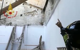 Le operazioni di messa in sicurezza dell'edificio sono particolarmente complesse: la zona interessata dal crollo si trova a fianco delle puntellature della chiesa di Sant'Agostino, danneggiata dal terremoto del 2016 -