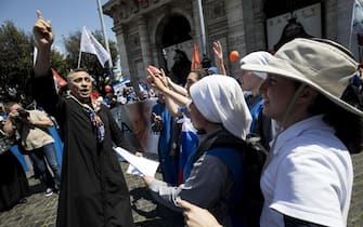 In piazza suore e sacerdoti. "La legge 194 ha fatto sei milioni di vittime. Vogliamo denunciare l'eugenetica, che elimina i bambini down e malformati, e la legge sul fine vita", ha detto Virginia Coda Nunziante, presidente del comitato organizzatore