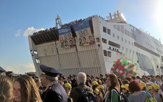 Nel giorno dell'anniversario della strage di Capaci è arrivata al porto di Palermo la Nave della legalità con a bordo mille studenti. L'imbarcazione è salpata da Civitavecchia dopo il saluto del capo dello Stato Sergio Mattarella -