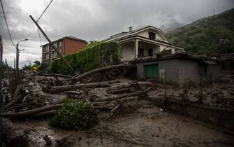 La frana si è abbattuta sul paese a ovest della città metropolitana di Torino. Sono state le violenti piogge di questi giorni a causare la caduta di fango e detriti staccatasi da una zona montuosa -