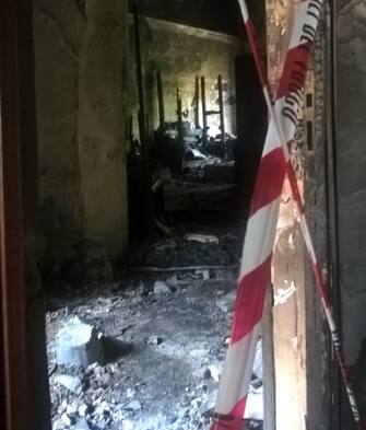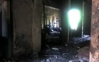 "Ho aperto la porta e c'era la scala totalmente invasa dal fumo, ho provato a scendere e la madre diceva che c'erano i figli dentro, che dovevamo salvarli" racconta un testimone. Nell'immagine, l'interno della struttura (foto di Raffaella Daino, SkyTG24) -