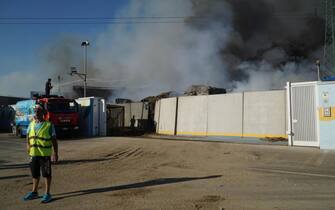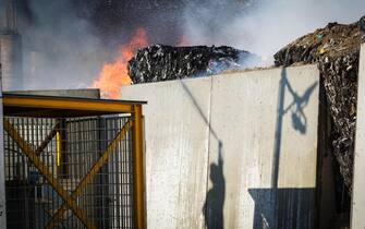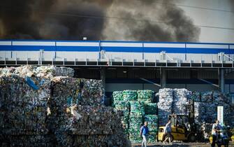 Incendio in un deposito di rifiuti nel Milanese