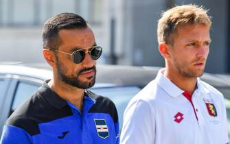 I due capitani Fabio Quagliarella (Sampdoria) e Domenico Criscito (Genoa) sono arrivati insieme, camminando vicini. Oltre a loro e ai compagni di squadra presenti anche gli allenatori Ballardini e Giampaolo e i presidenti delle due società Enrico Preziosi e Massimo Ferrero -