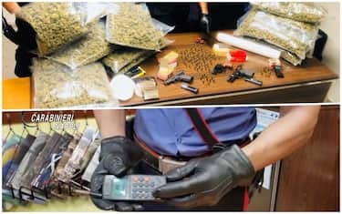 La scoperta è avvenuta in un box di un parcheggio privato, dove, su diversi scaffali, erano poggiati borsoni, borse termiche e da supermercato. All’interno, gli inquirenti hanno rinvenuto l’arsenale, composto da un fucile a pompa con matricola abrasa, una pistola a tamburo e la pistola – carica - a forma di un vecchio modello di cellulare. Rinvenute anche molte munizioni: 166 cartucce per armi semiautomatiche e 160 per armi di altro tipo. Oltre alle pistole, sono stati trovati più di 25 chili di marijuana, 4 etti di hashish e mezzo chilo di cocaina.