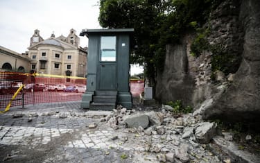 Il distacco è avvenuto alle spalle del gabbiotto dove gli agenti della Polizia Locale di Roma Capitale controllano gli accessi da via della Consolazione -