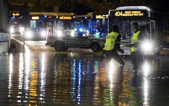 Anche alcune auto di servizio dei vigili sono rimaste bloccate perché semisommerse dall'acqua -