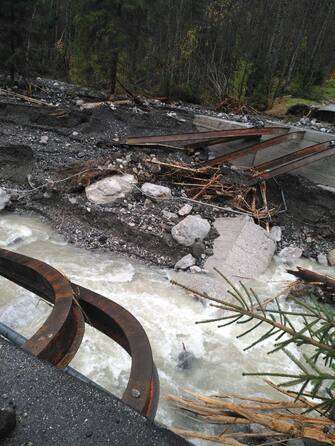 A supportare il lavoro da ieri sera è arrivato nel Bellunese anche il direttore operativo del coordinamento per le emergenze della Protezione Civile nazionale, Luigi D'Angelo, che con il suo staff sta verificando la gravità dei danni causati dal maltempo. Nella foto: l'ex ponte Bordina a Col di Pra, Taibon, danneggiato dal forte maltempo che ha colpito l'Agordino -