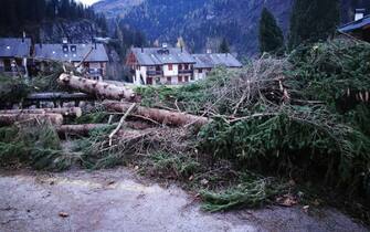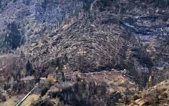Il maltempo continua a colpire diverse regioni d’Italia, compreso il Veneto. Qui, dove vige ancora l’allerta rossa, diverse frane stanno isolando l'Agordino, nel Bellunese. Nella foto: i danni causati dal maltempo a Caprile e Sac, frazioni di Alleghe (Belluno) -