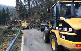 Nella regione è ancora allerta rossa per le precipitazioni che continuano senza sosta. I terreni saturi di acqua rischiano di crollare e causare smottamenti su diversi versanti. Terra e fango bloccano i paesi sulla strada regionale 203
