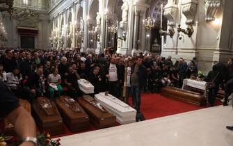 I funerali si sono conclusi con l'uscita dei 9 feretri dalla cattedrale di Palermo, stracolma di gente. Palloncini bianchi sono stati liberati in aria mentre venivano portate fuori le bare -