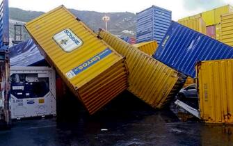 Circa venti container si sono ribaltati al passaggio del vortice e tre di questi, fa sapere la Capitaneria di Porto, sono finiti in mare e verranno recuperati domani. Due operatori portuali hanno riportato lievi lesioni a una mano e a una spalla -