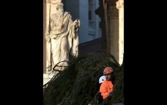 Vaticano, l'allestimento dell'albero di Natale in piazza San Pietro. FOTO