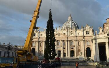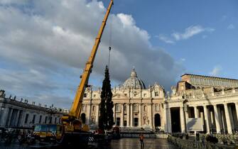Piazza San Pietro ha il suo albero di Natale. Nella mattinata di giovedì 22 novembre sono cominciate le operazioni per issare la pianta di fronte alla basilica -