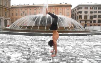 C'è però chi ne ha approfittato, sfidando il freddo, per qualche acrobazia gelida in piazza De Ferrari, cuore della città della Lanterna -