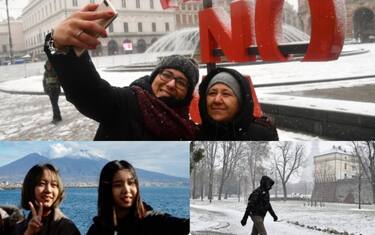 La neve ha toccato anche alcune regioni meridionali. In Campania i napoletani e i turisti, al loro risveglio, hanno trovato neve sul Vesuvio e sole a mitigare il freddo -