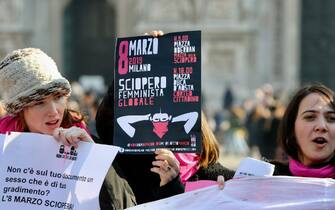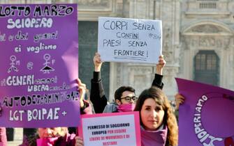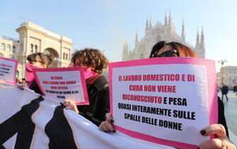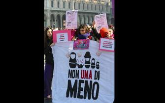 Nel corso del flash mob di piazza Duomo l'associazione femminista ha invitato tutte le donne e la comunità Lgbt a partecipare allo sciopero femminista transnazionale dell'8 marzo –