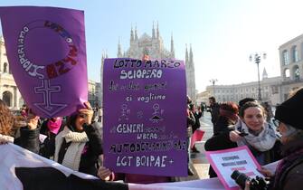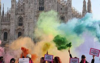Flash mob in piazza Duomo a Milano contro la violenza sulle donne. La manifestazione cade a un mese esatto dalla festa dell'8 marzo –