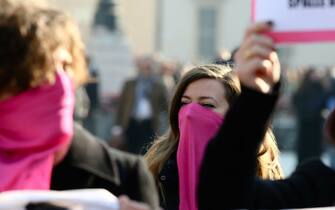 Giornata contro violenza su donne a Milano: baschi rosa e flash mob