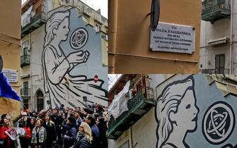 La filosofa e scienziata greca trova spazio, anche con un murales, nel cuore dei Quartieri Spagnoli quale ''simbolo di sapienza femminile e libertà di pensiero''. Alla cerimonia presenti studenti e il sindaco Luigi de Magistris