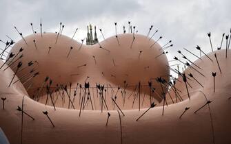 La "Maestà Sofferente" di Gaetano Pesce in piazza Duomo nell’ambito della Design week. È ispirata alla storica poltrona Up 5&6. Metafora della violenza sulle donne, rappresenta un corpo femminile ferito da un centinaio di frecce. Ma non a tutti è piaciuta