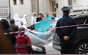 I colleghi del carabiniere hanno coperto l'auto di servizio con una bandiera tricolore. In un post su Facebook del Comando Generale dell'Arma, si legge: "Una vita umana vale il mondo intero" (Foto: Piero Ancona)