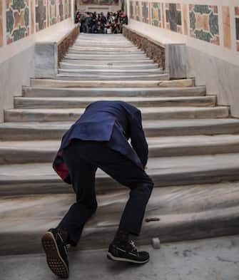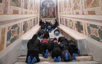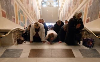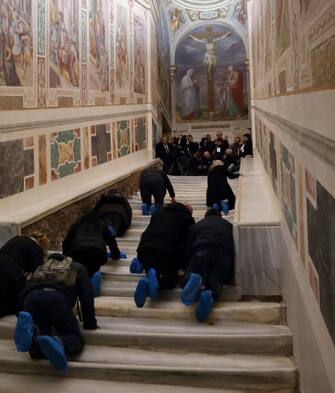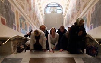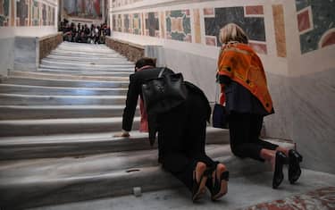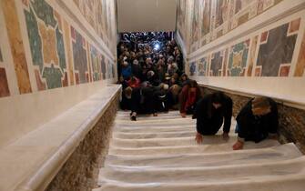 Fino al 9 giugno i fedeli possono ammirare e salire in ginocchio i 28 gradini di marmo senza la copertura lignea che li ha preservati per 300 anni. Secondo la tradizione cristiana, su quella scalinata Gesù salì verso il palazzo dove Pilato lo condannò a morte