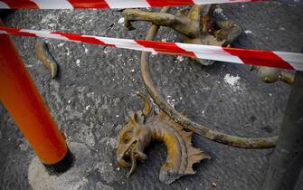 In particolare si è staccato un fregio raffigurante un gallo, ferendo un giovane turista di nazionalità tedesca che era di passaggio