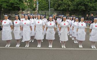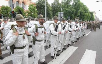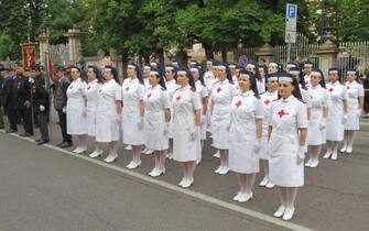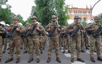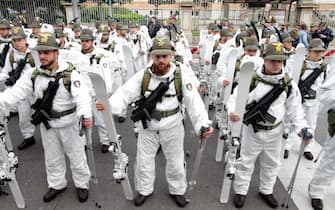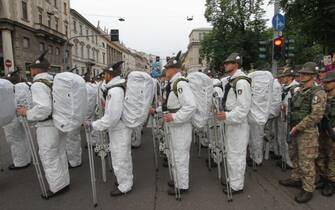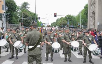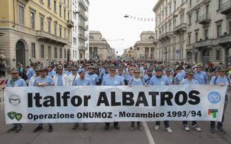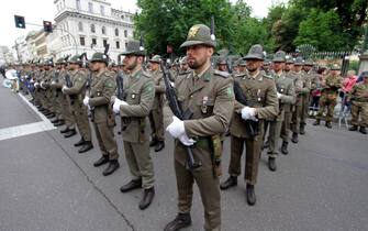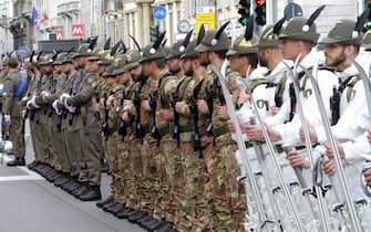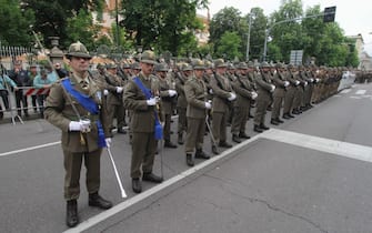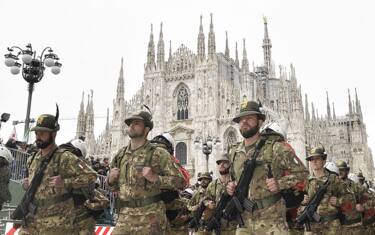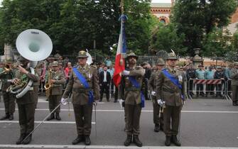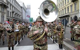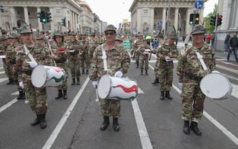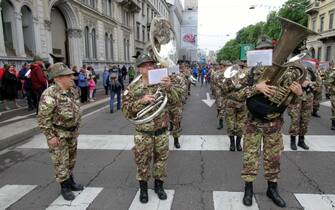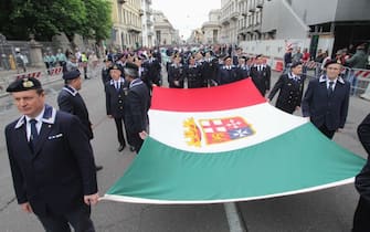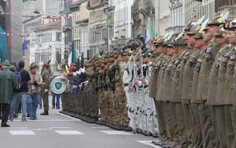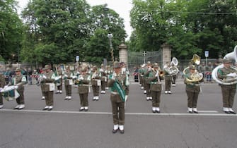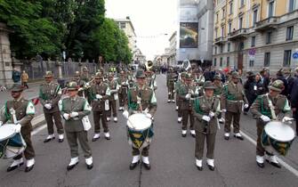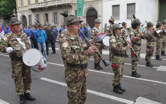Anche il ministro della Difesa Elisabetta Trenta ha fatto visita ai radunati prima dell'avvio e si è poi diretta in Duomo, in tribuna d'onore. Nella foto: un momento dello sfilamento