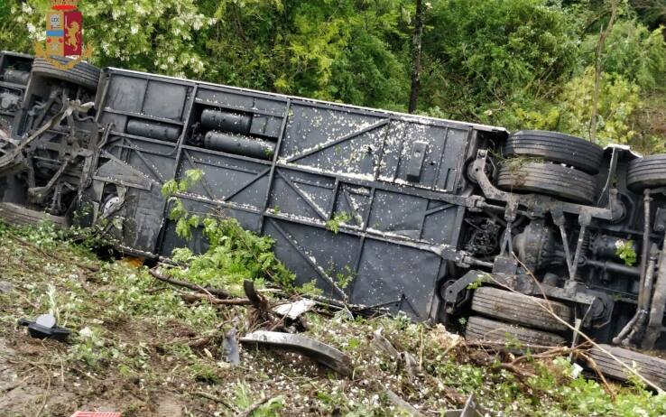 La Polstrada non esclude la distrazione tra le cause dell'incidente. Lo afferma Paolo Maria Pomponio, dirigente del Compartimento polizia stradale per la Toscana, intervenuto sul luogo dell'incidente. "Poteva andare peggio, la vegetazione ha attutito la caduta dell'autobus finito nella scarpata per una decina di metri", ha aggiunto Pomponio.