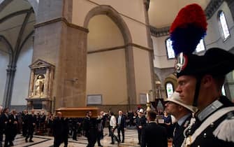 L'ingresso del feretro di Franco Zeffirelli nel Duomo di Firenze. Il regista è morto a Roma il 15 giugno all'età di 96 anni. Le esequie sono celebrate dall'arcivescovo di Firenze, il cardinale Giuseppe Betori, alla presenza del sindaco della città