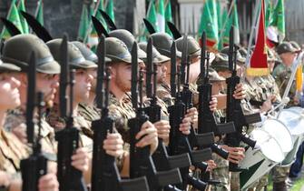 Il picchetto degli Alpini schierato in occasione della cerimonia di deposizione di una corona ai caduti in occasione del centenario dell'Associazione Nazionale Alpini