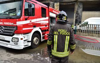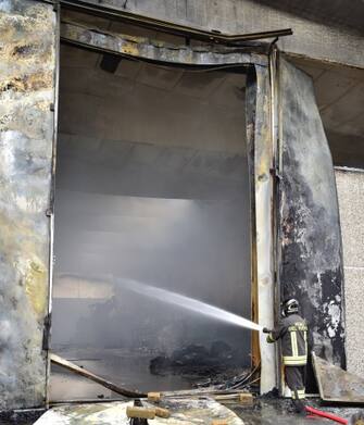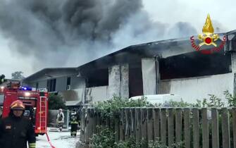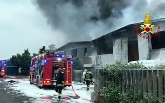 Un frame tratto da un video dei Vigili del fuoco, appena giunti sul posto e impegnati a spegnere le fiamme