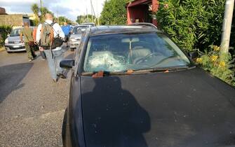 Nella foto, l'auto della 27enne sbalzata dalla tromba d'aria